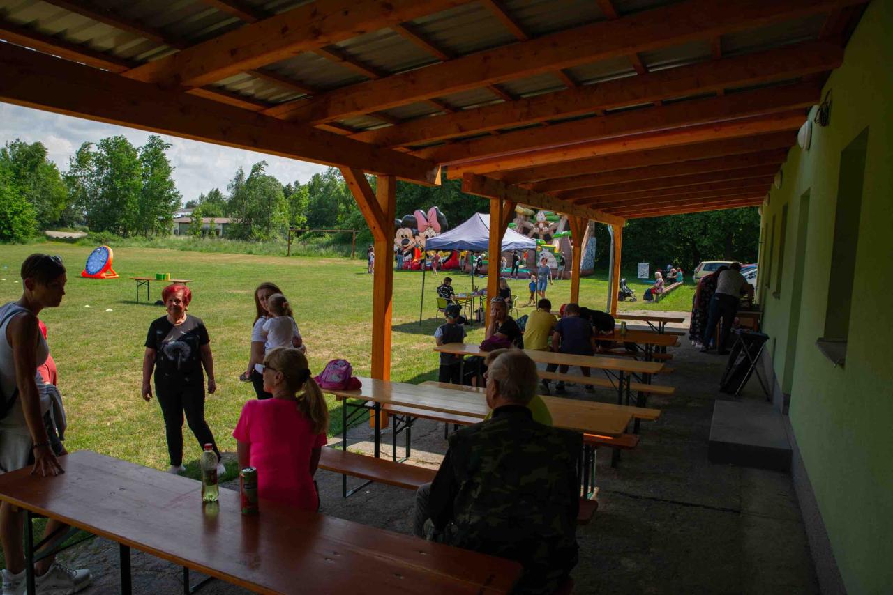 od zámku Orlík a západně od hráze Orlické přehrady. Žije zde (k 1. 1. 2023) 407 obyvatel. Obec se skládá ze tří katastrálních území: Kozárovice, Holušice a Vystrkov.